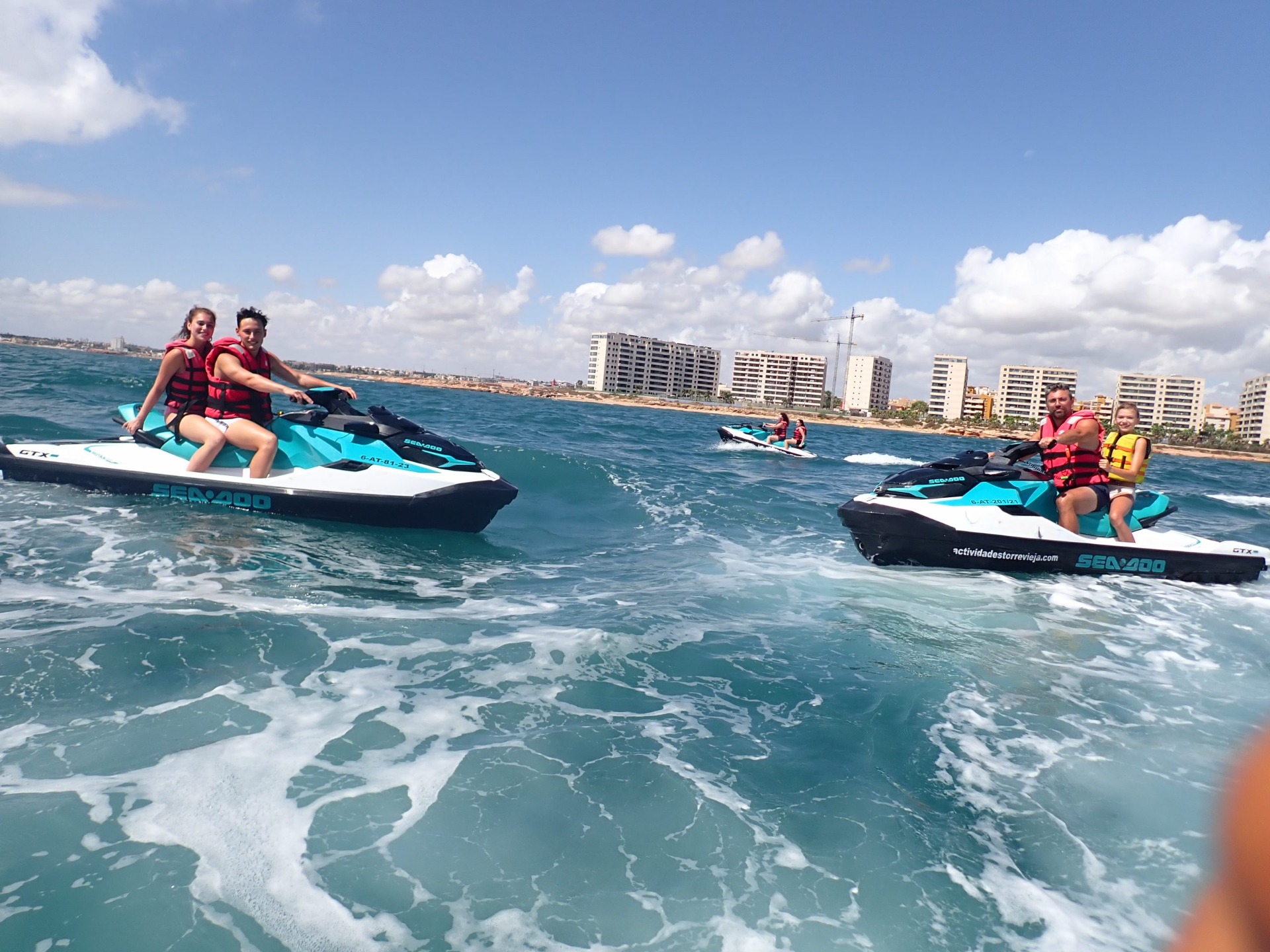 Jet ski rentals and excursions from Torrevieja Alicante Welcome to the ultimate aquatic experience on the beautiful coast of Torrevieja, Alicante. At our jet ski rental center, we offer you the opportunity to immerse yourself in the thrill of the Mediterranean Sea and explore its crystal clear waters in a unique and exciting way. Whether you want to go on an exciting unlicensed excursion, rent a jet ski for your personal use or surprise someone with a gift card, we are here to make your experience on the water unforgettable.